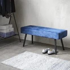 Massivt trä och stål. Inkl. dyna med tygklädsel. B100 x H50 x D34 cm